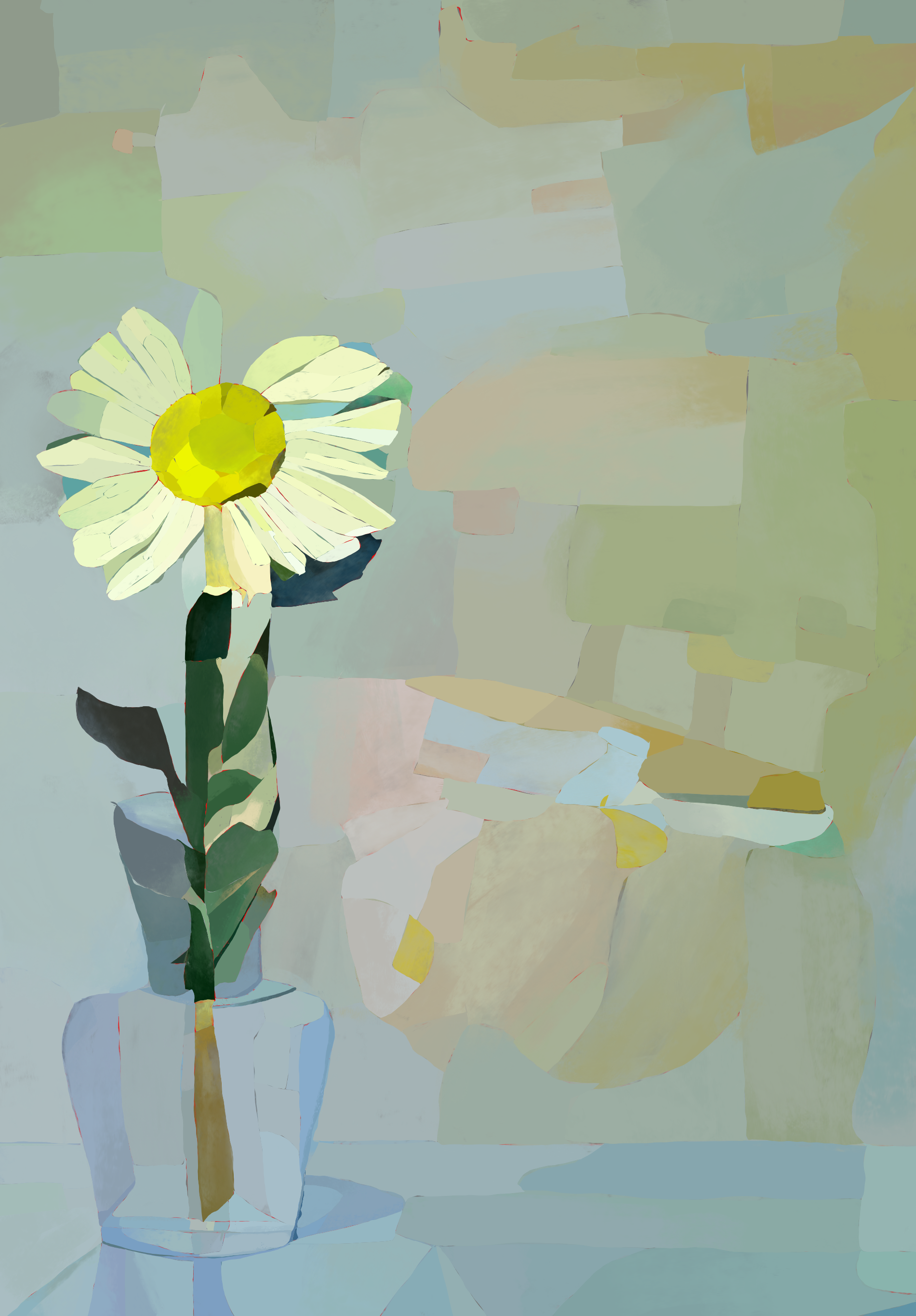a different story, Digital painting from start to finish based off GAN reference. A singular daisy.Available here.